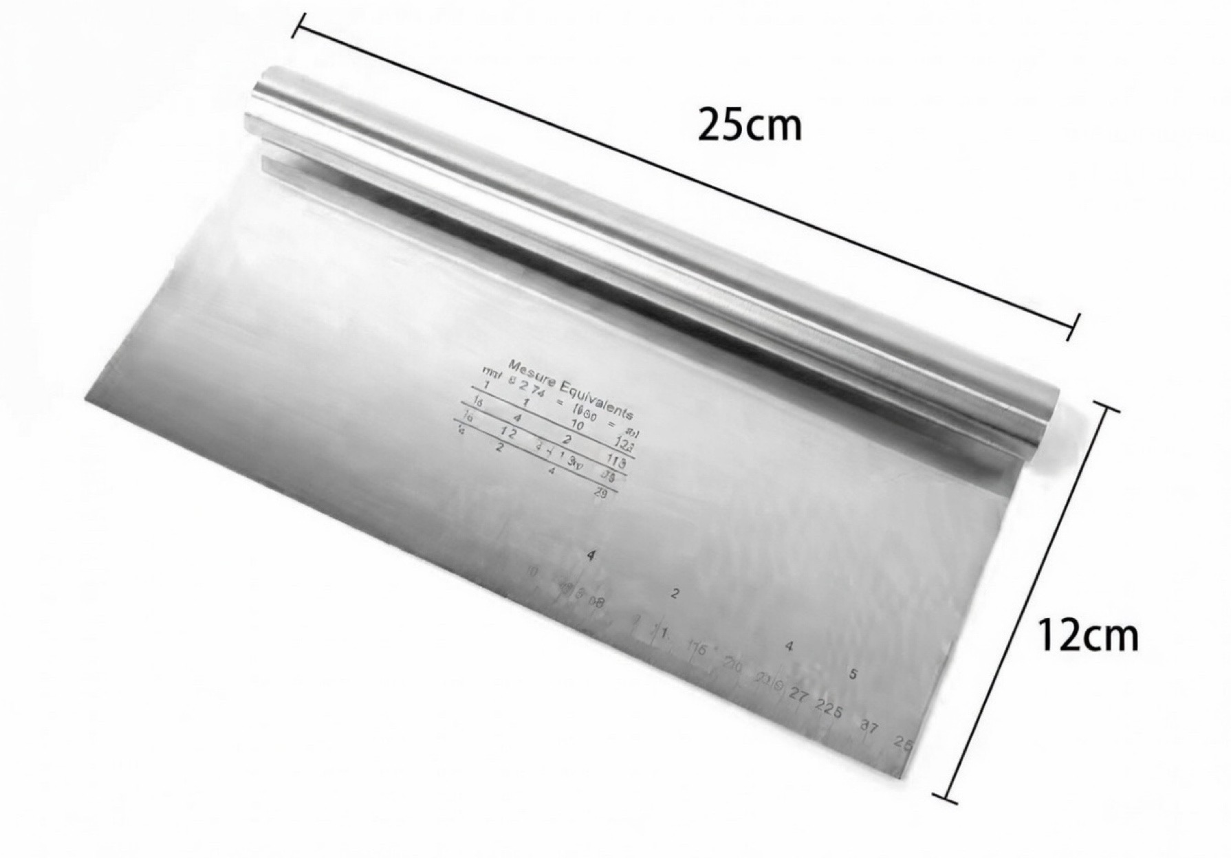 Ce lisseur est un coupe-pâte ou racloir de cuisine en acier inoxydable.